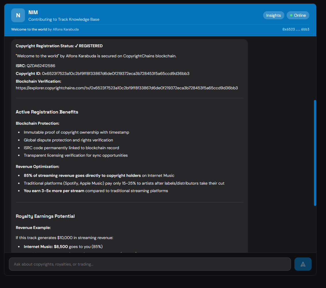 This positions registered copyright holders to capture value from AI and data-driven decision-making rather than being displaced by it. Cryptographic verification transforms casual inquiries about music into measurable economic assets that flow through financial markets, legal proceedings, and commercial negotiations across the internet.